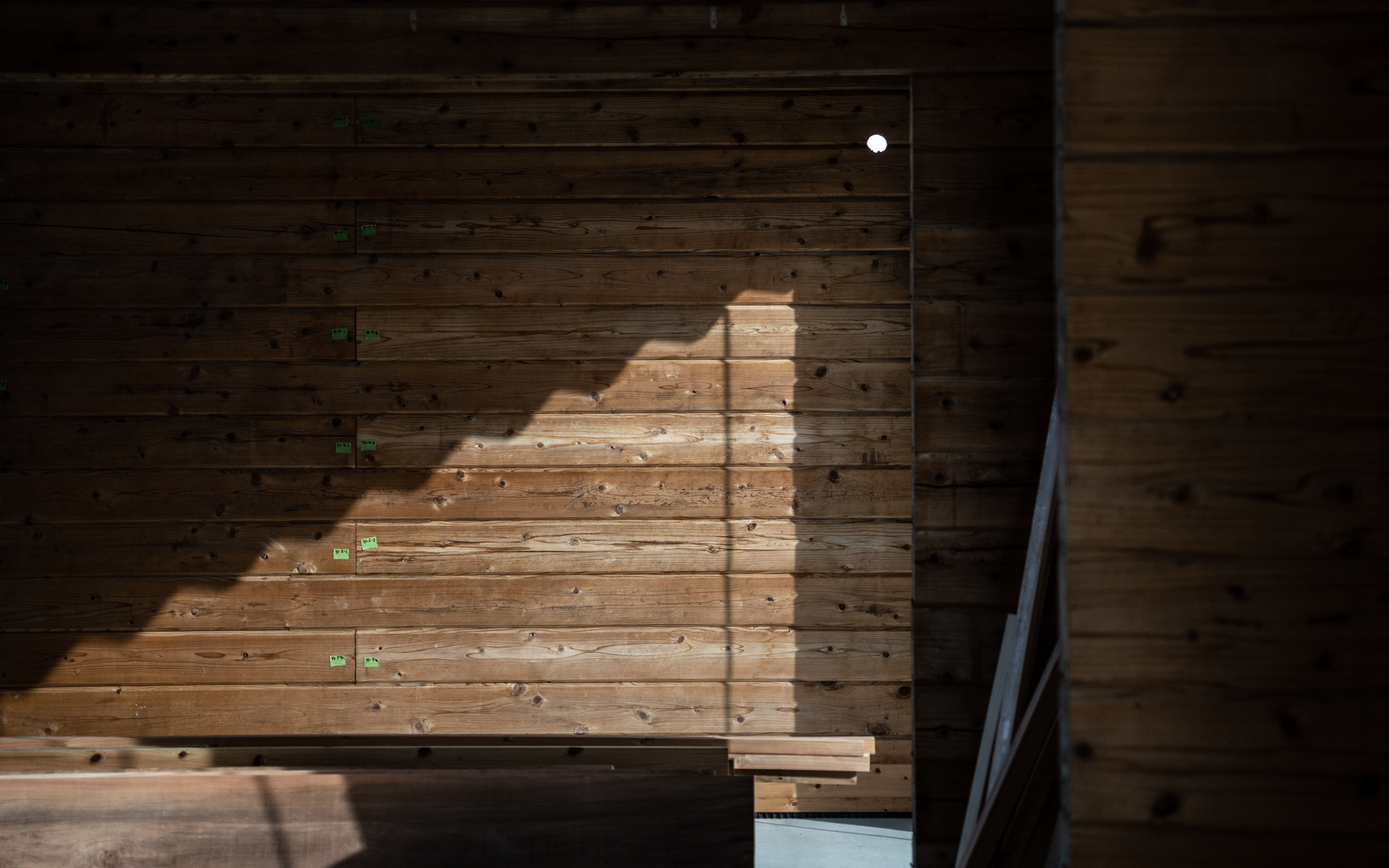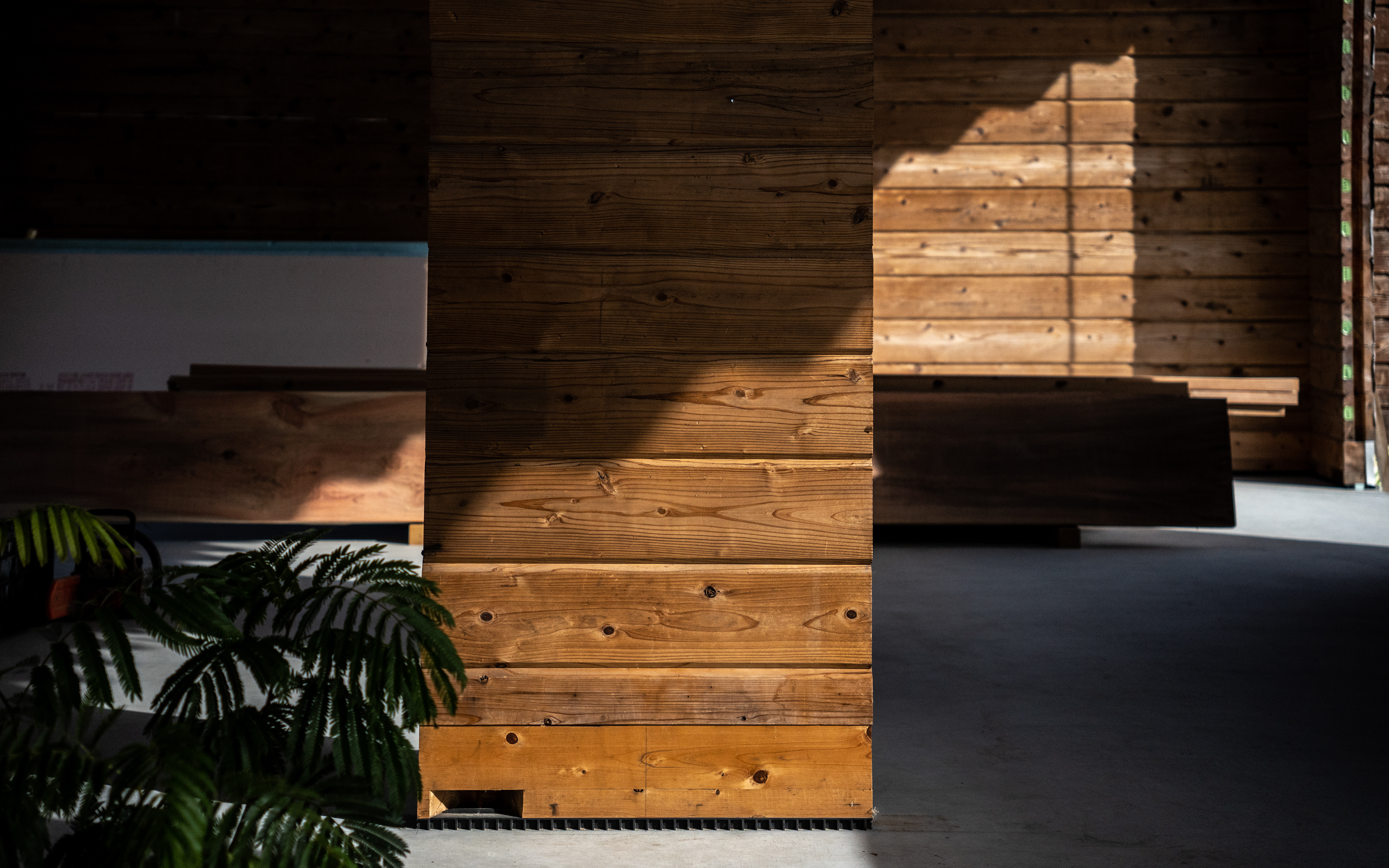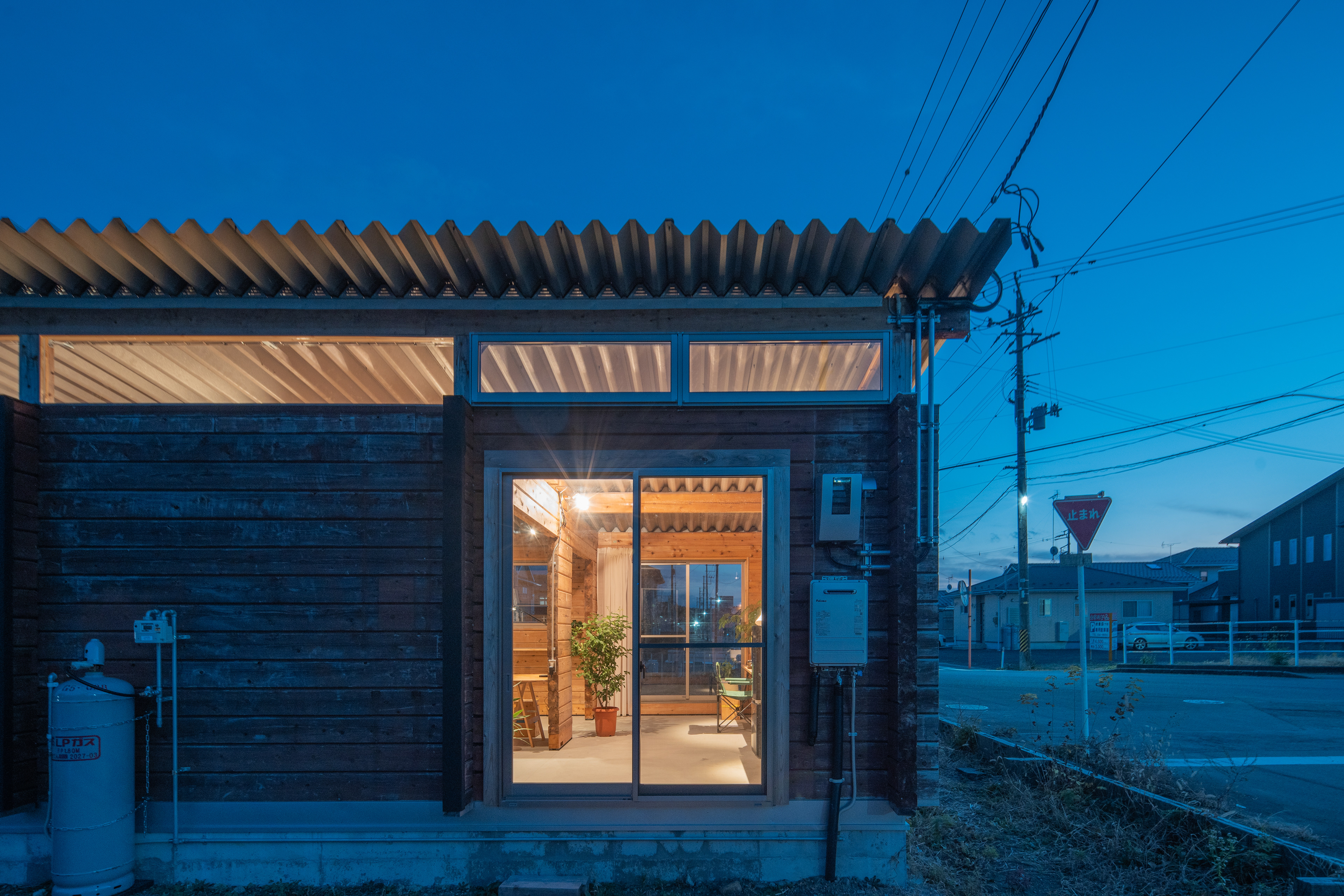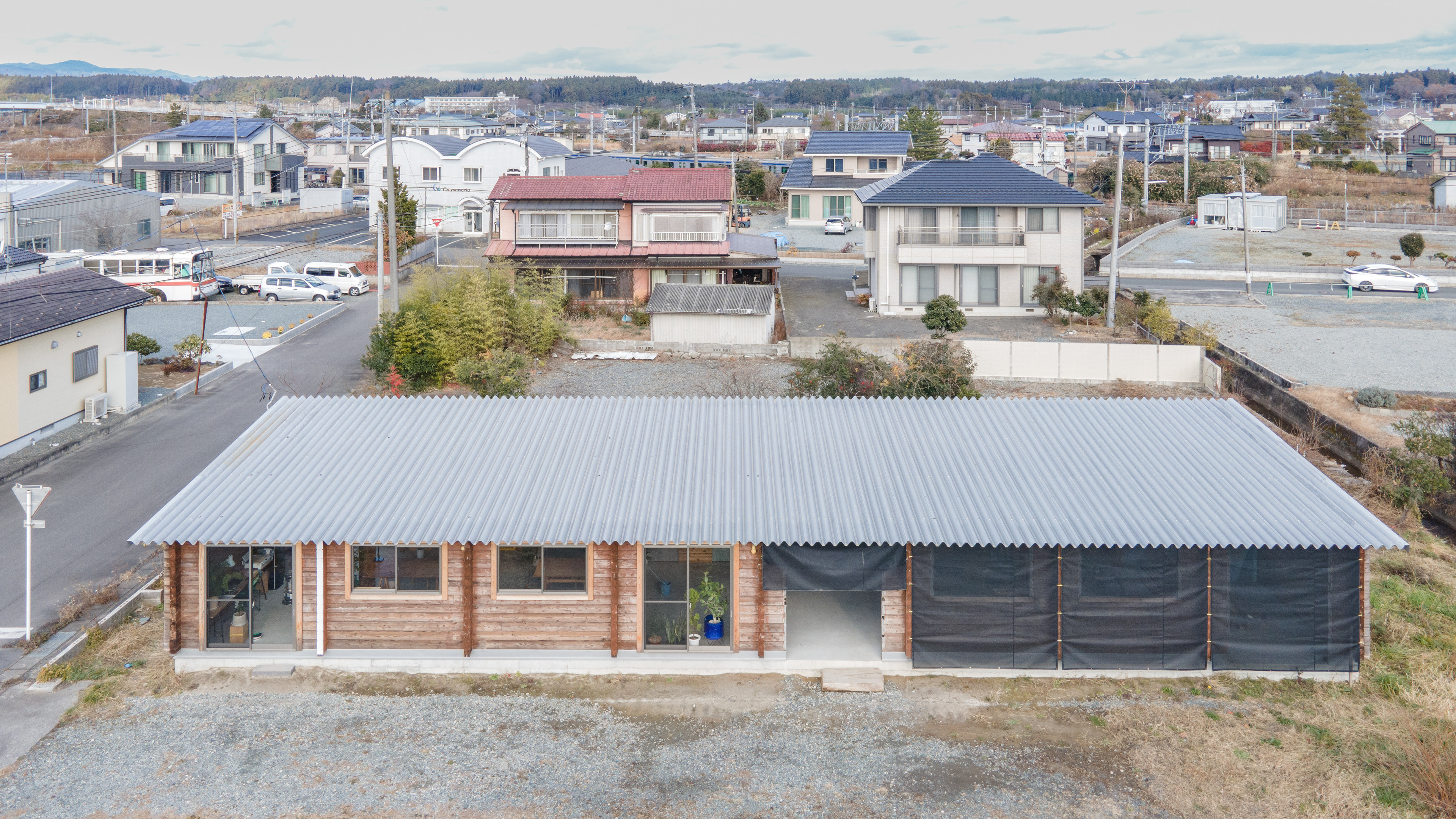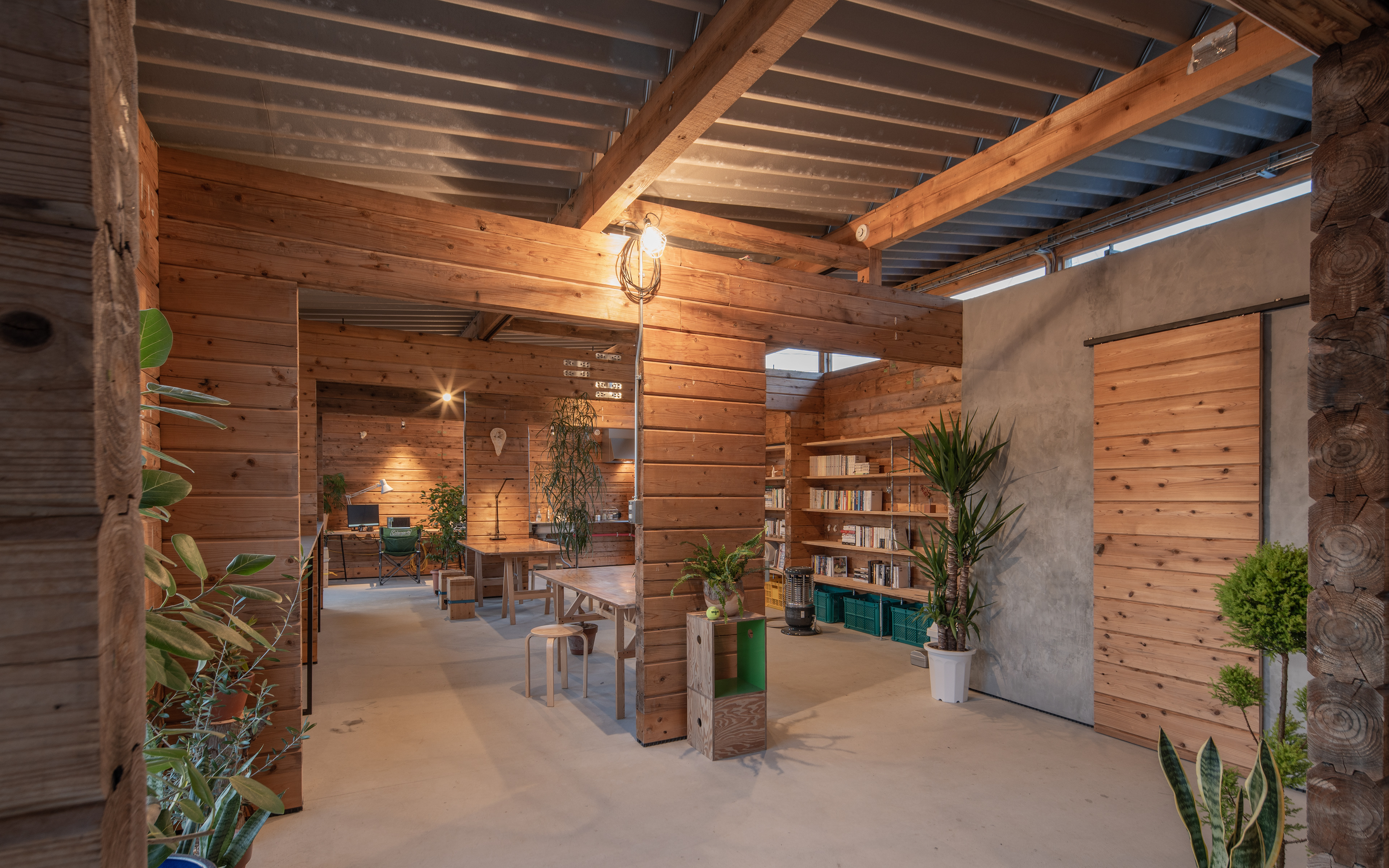 設計・施工:Fimstudio/用途:事務所/構造:W造(丸太組構法:ログ仮設再利用)/福島県浪江町/2022年